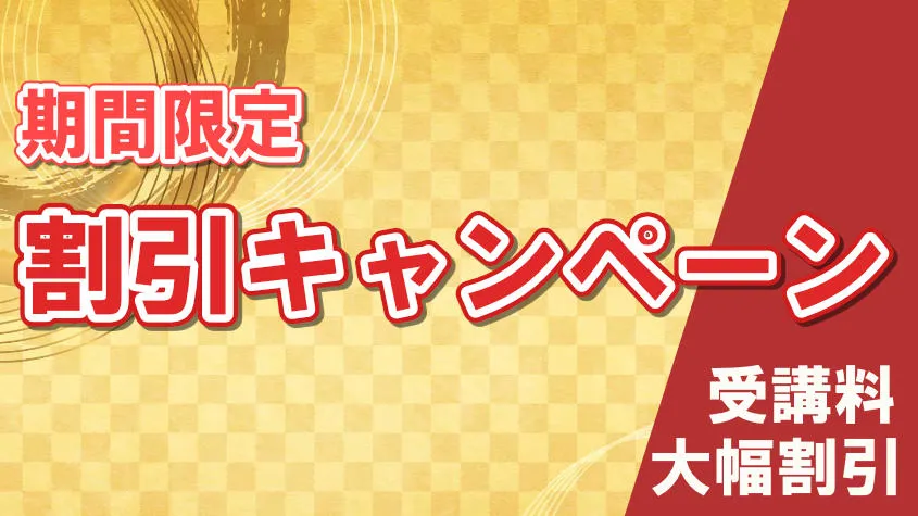 | 友人紹介割引 | 受講生・過去在籍者の紹介で申込した方 | 申込者:受講料から1万円OFF 紹介者:5,000円分のギフトカード進呈 | 単科・単科パックは対象外 |