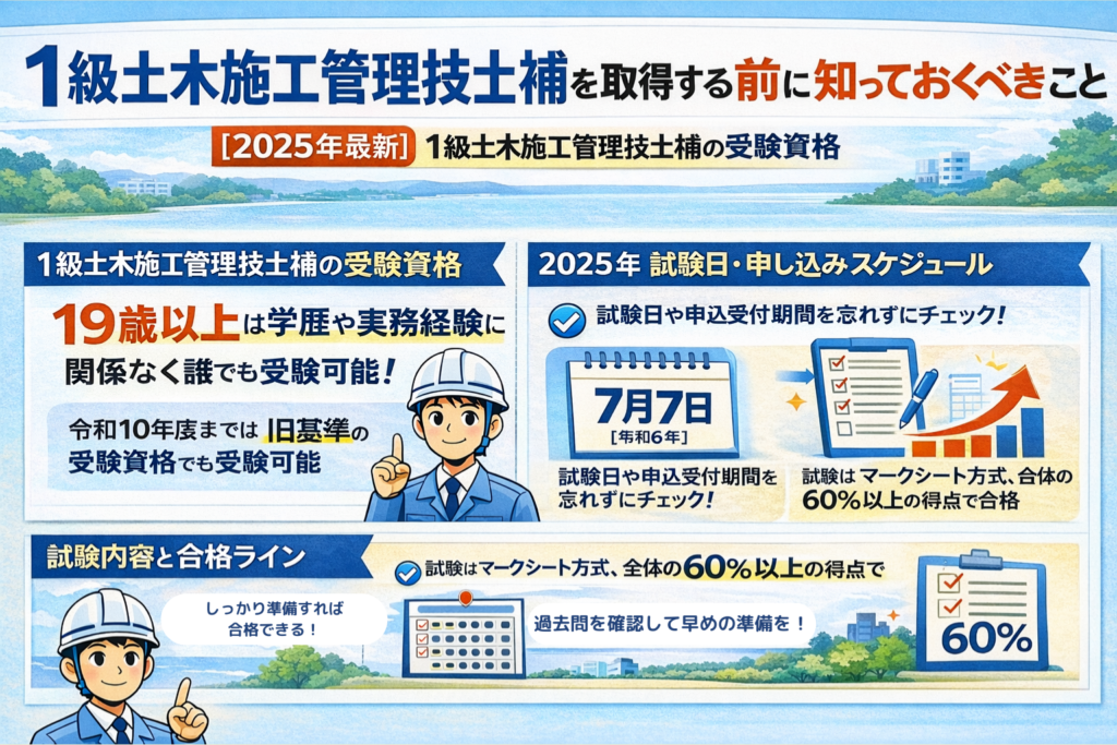 【2025年最新】1級土木施工管理技士補の受験資格(19歳以上は実務経験不要)