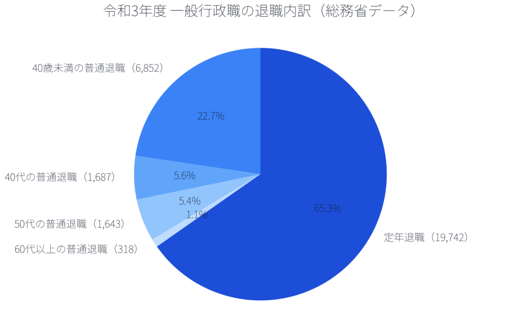総務省の調査(令和3年度のデータ)では、定年まで勤めた一般行政職は19,742名。