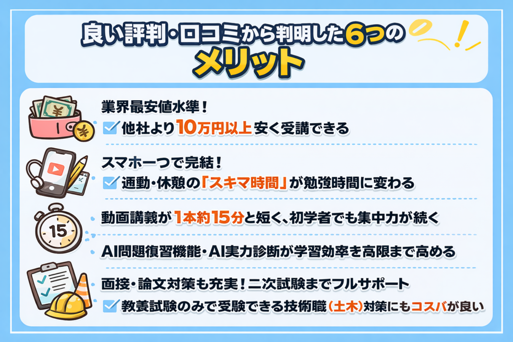 ここからは、第三者の口コミも交えながら、スタディングならではのメリットを具体的に見ていきましょう。