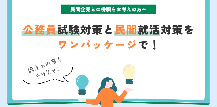| 地方上級・市役所・国家一般職(大卒程度) | 地方上級、市役所、国家一般職 | 66,000円 | 教養+専門、記述対策、動画・演習 | 12ヶ月 | 人気No.1。一次突破率高く、社会人合格多数 |